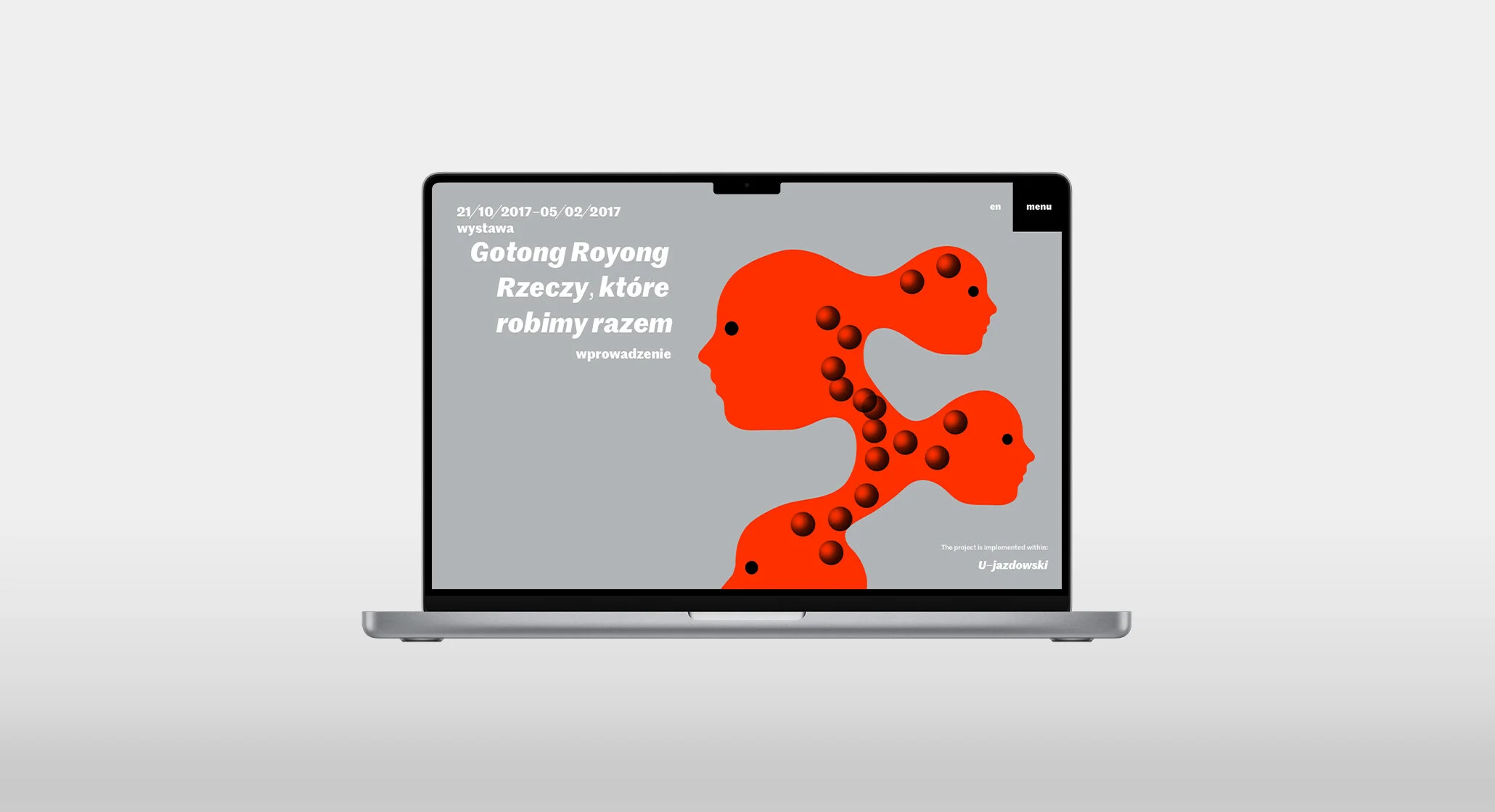 The Gotong Royong - website project / Credits & special thanks goes to: Custom Typeface - Interpunkcja font designed by Marian Misiak, Tomek Bersz; Exhibition KV designed by Krzysztof Bielecki; Client Service: Agata Kühl; Front-end developers: Daria Zychowicz, Roman Kühl; Art Direction & Final Web Design: Rubovka